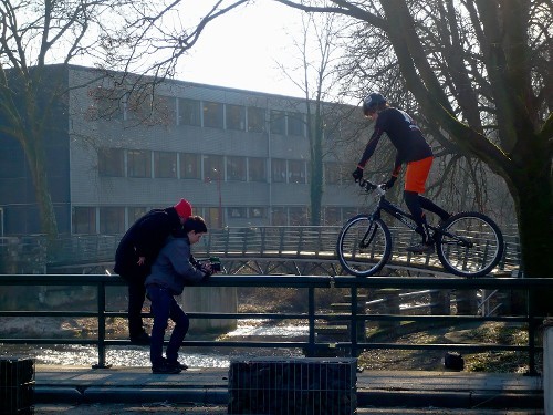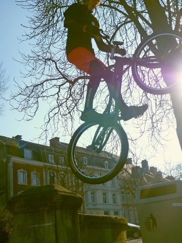 „Biketrial“ bedeutet eigentlich nichts anderes, als alles Mögliche mit seinem Fahrrad auszuprobieren, denn trial kommt vom Englischen "Try all".
