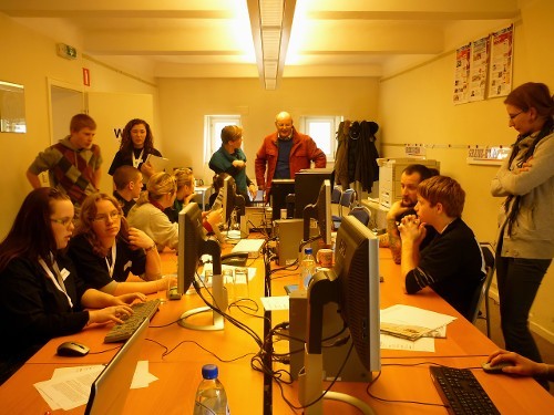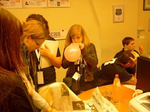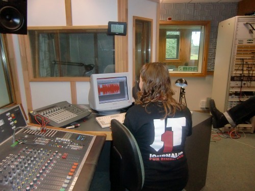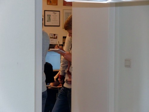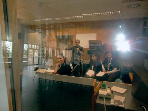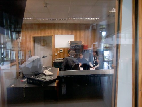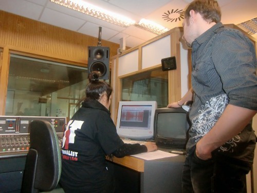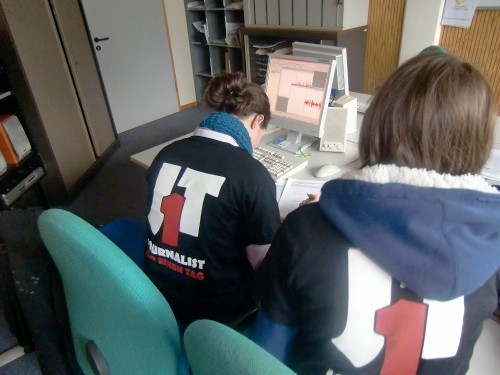 Internetredakteur Kevin begleitete am Nachmittag die Radio-Teams zum BRF. Dort schnitt das Radio-Team "Beitrag" Ihre O-Töne und das Radio-Team "Live" bereitete sich so gut wie möglich auf das Live-Interview vor. Das Live-Team schnitt bereits am Vormittag nach der Rückker der Interviews mit den Schülern des KAE ihre O-Töne vor. Das Beitrag-Team hat sich auch vorbereitet, doch hat man hier mehr gelacht als seinen Text seriös gelesen. Nach einigen Anläufen hat aber auch hier die Vorbereitung geklappt.
