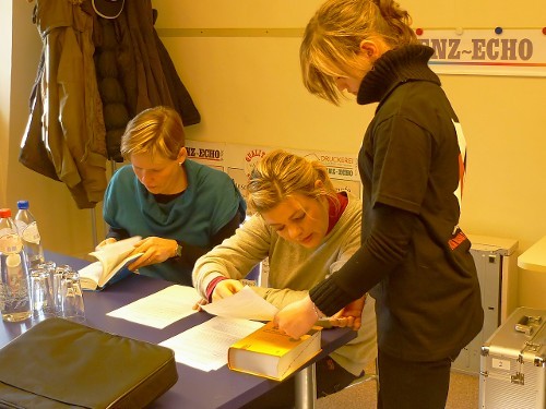 Die Reporter für einen Tag Evelyne, Julia und Anja haben den Direktor der Musikakademie Hans-Georg Reinertz interviewt. Nach der Entdeckung der Funktion des Aufnahmegerätes konnten wir dem freundlichem Leiter der Akademie viele Löcher in den Bauch fragen. Man merkte, dass es ihm Freude bereitete uns über die pädagogischen Aufgaben und die Geschichte der Musikakademie aufzuklären. Morgen wird der Artikel hier und im Grenz Echo erscheinen.