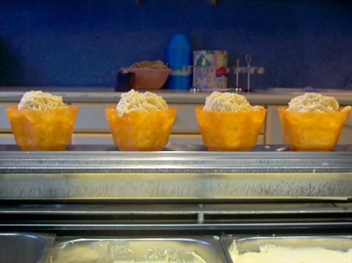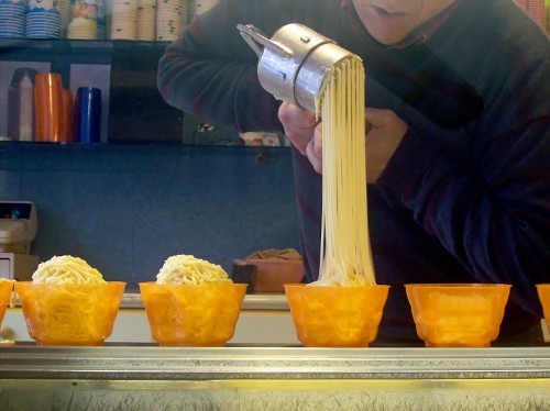 Heute gibt es eine Sonderaktion in der Eisdiele Roncaletti in der Eupener Unterstadt: Spaghettieis und Dame Blanche zum Preis von einem Euro. Das konnten wir uns natürlich nicht entgehen lassen und haben Eis für das ganze Team gekauft.