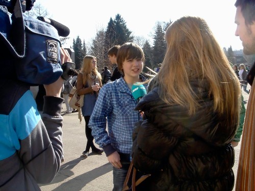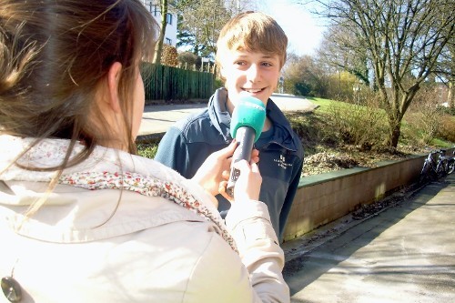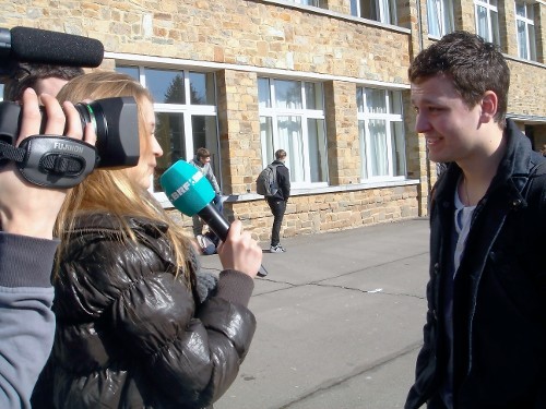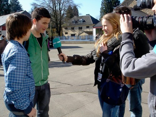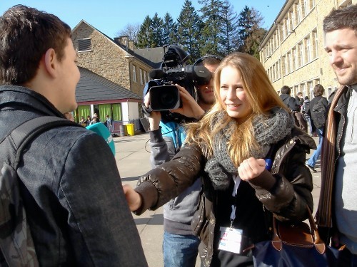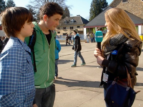 Ich habe gerade Nina, Anne und Catherine bei ihren Interviews über den Frühling begleitet. Zuerst sind die drei in die PDS gegangen und haben einige Schüler und Leher befragt. Allgemein wurde gesagt, dass man sich im Frühling besser fühlt und dass man sich auf die Terrasse setzen und die Sonne genießen kann. Viele Schüler waren erst planlos und haben viel gekichert. Nicht jeder Schüler wollte interviewt oder fotografiert werden, aber es gab genug Schüler, die sich trotzdem bereit erklärt haben, ihnen ein tolles Interview zu geben. Das Ergebnis könnt ihr heute Nachmittag im Hitclub auf BRF1 hören.
