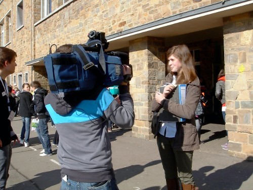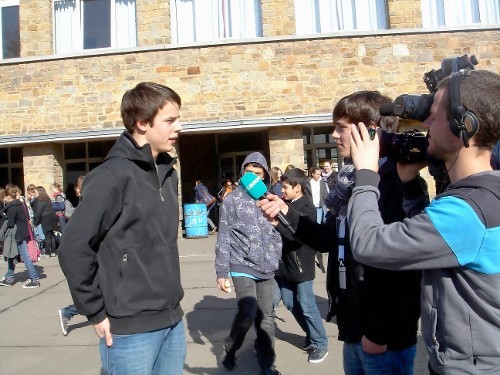 Nun ist die Umfrage gelaufen und die Schüler haben sich in die Klassenzimmer gerettet. Nur wenige hatten den Mut, sich unseren Fragen zu stellen und manche haben sich erst später erweichen lassen. Dennoch war ihnen die Neugierde anzusehen.