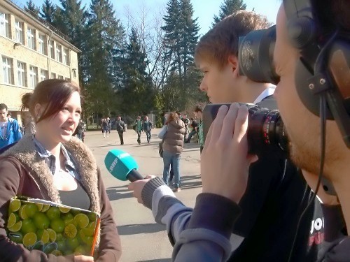 Beim Fernsehen dreht es sich heute um das Thema "Kinder von Tschernobyl"! Zur Zeit macht sich das Fernsehteam auf dem Weg zum Präsidenten des Vereins. Dort werden sie den Präsidenten zu der heutigen Situation in Tschernobyl und über die Folgen der Atomkatastrophe in Japan befragen. Danach machen sie eine Umfrage im KAE.