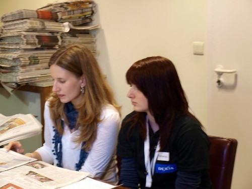 Um 14 Uhr nahm Stephanie Cooper an der Redaktionskonferenz teil. Es war sehr chaotisch, weil in der Zeitung Platzmangel herrschte. Die Samstagsausgabe, die hier vorbereitet wurde, beinhaltet viele Stellenangebote, die den Platz belegen.