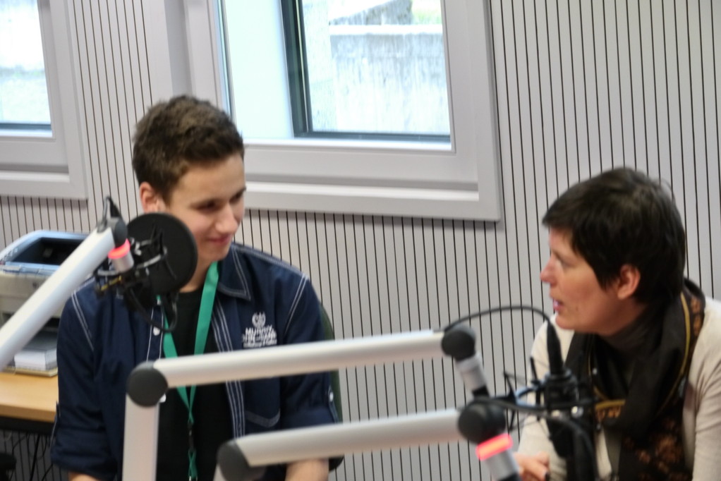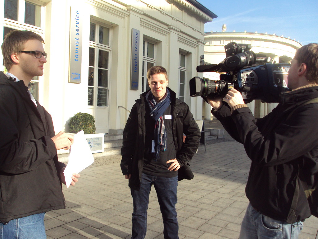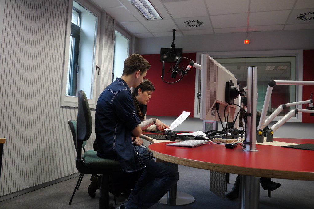 Der Radiobeitrag handelt vom TSC Dancefeet, während die vom Fernsehteam am TV-Bericht des L-Pavs arbeiten.