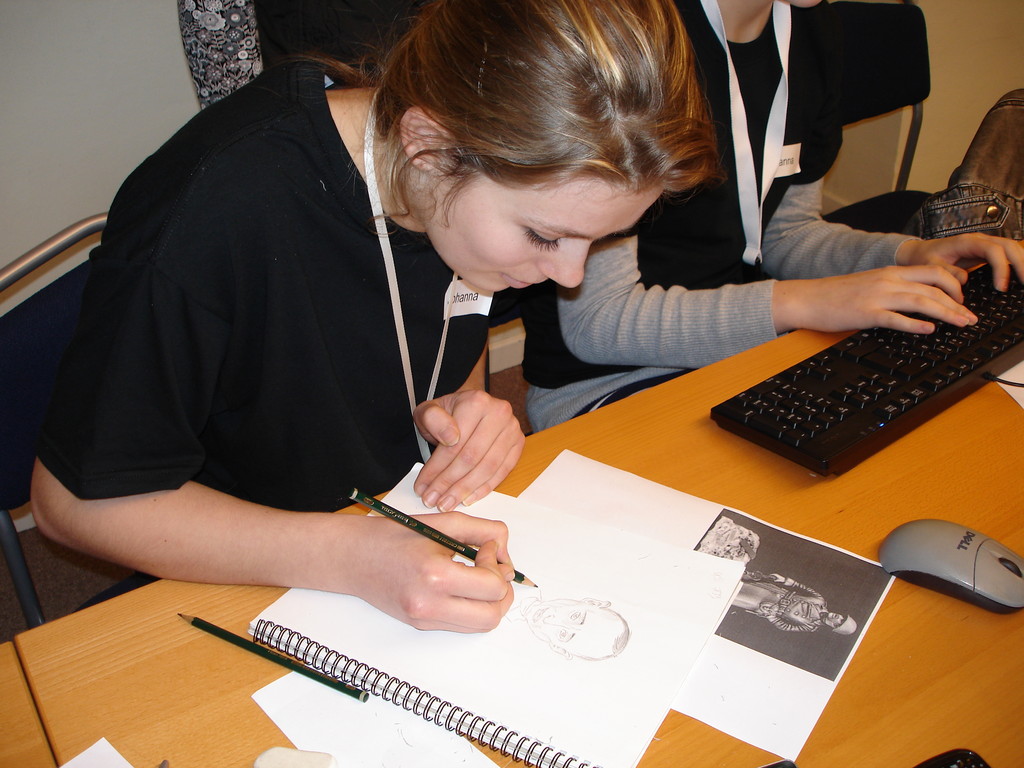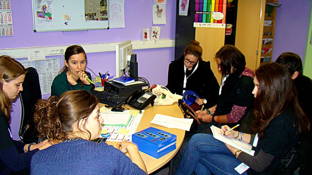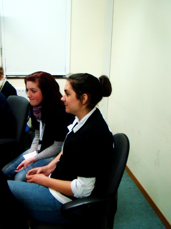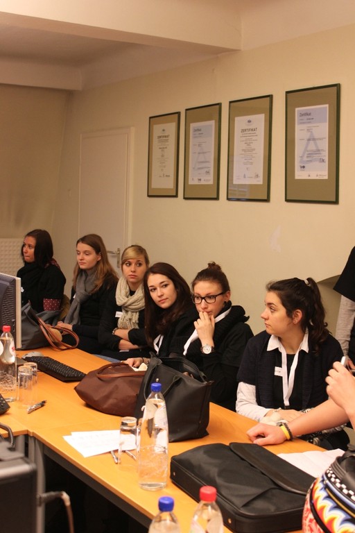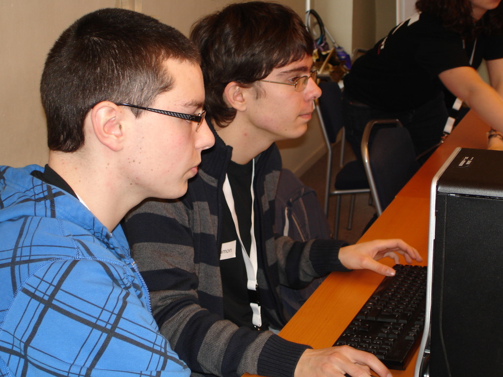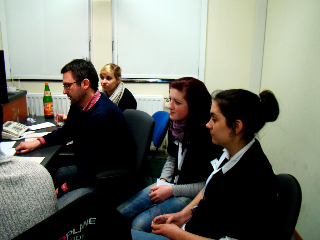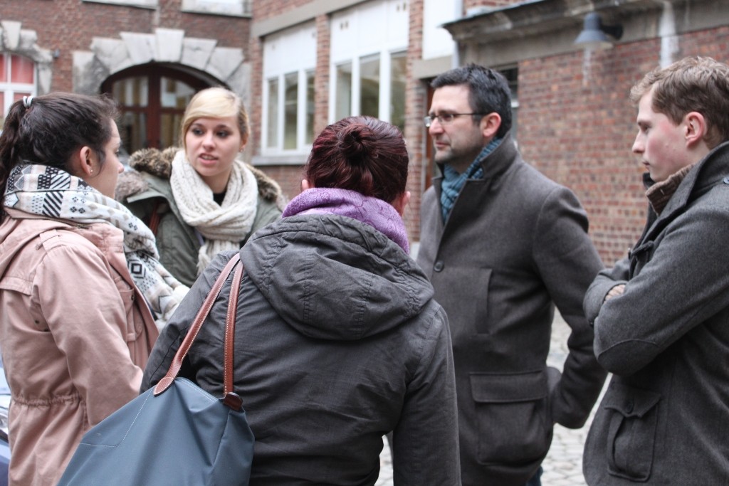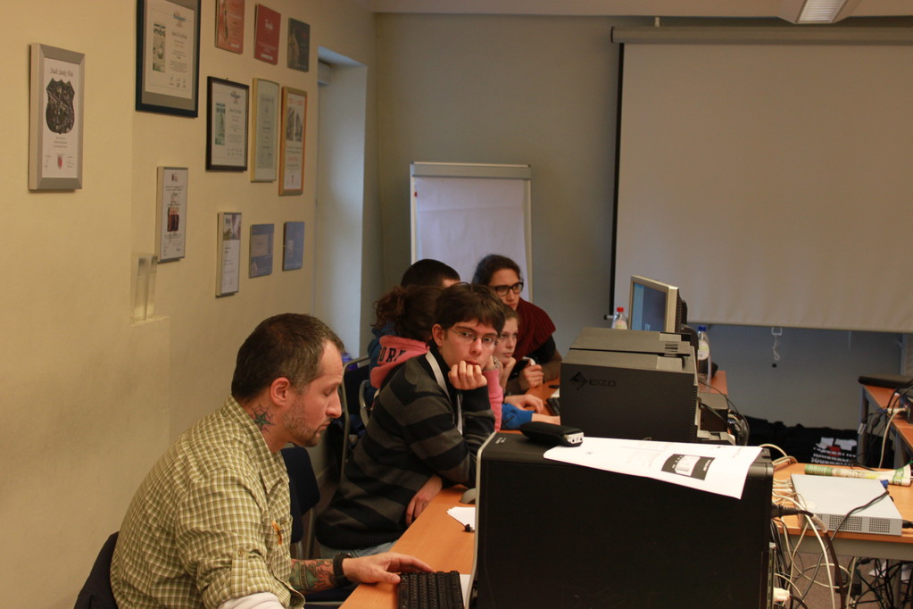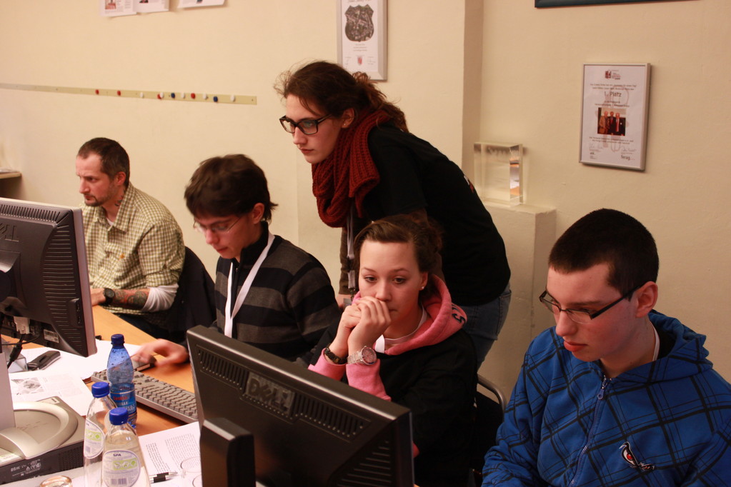 Die eine Gruppe schneidet gerade den Beitrag über das Asylbewerberheim, die andere bereitet ihren Beitrag über die Straßennahmen in Eupen vor!