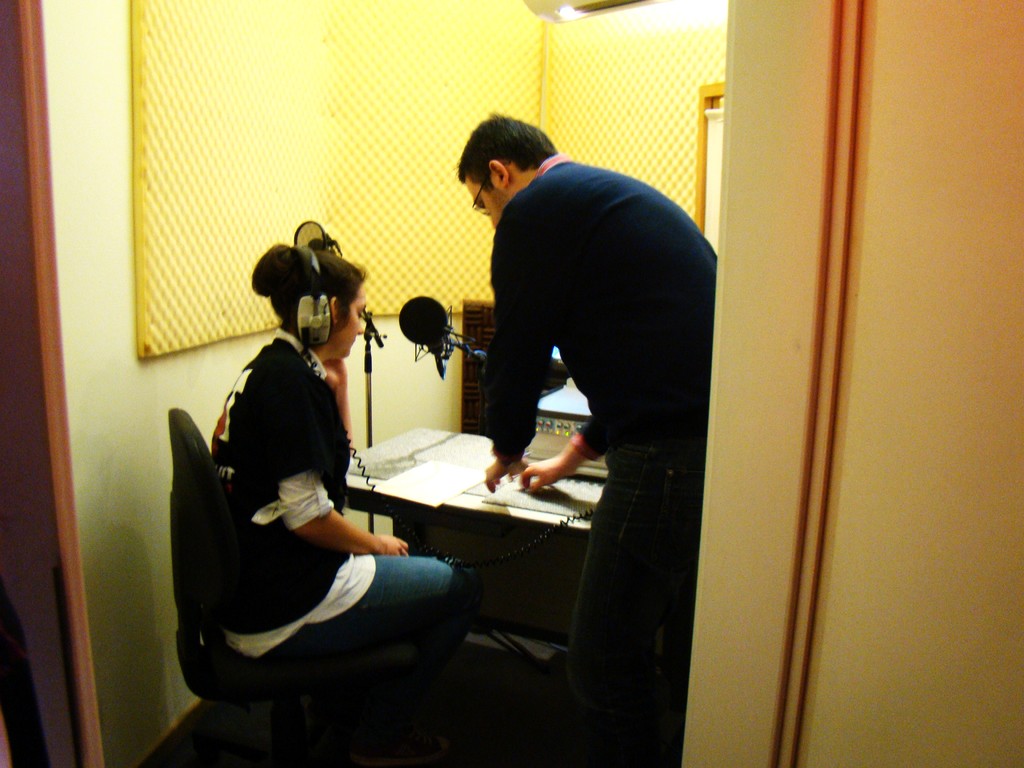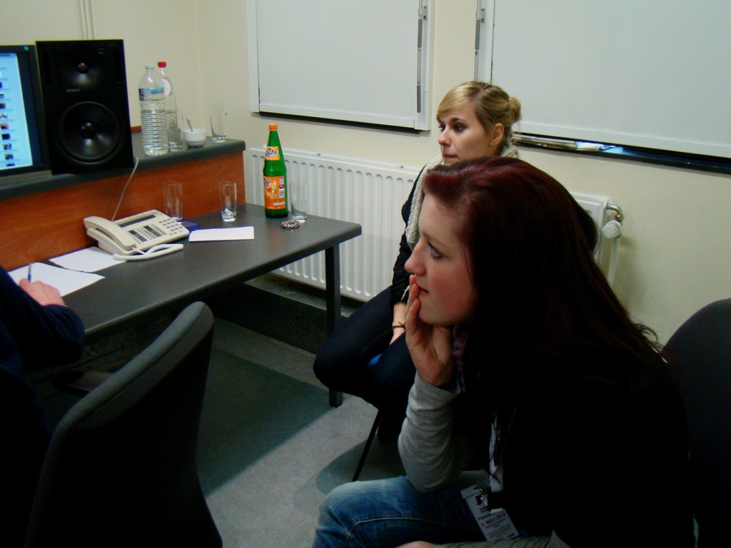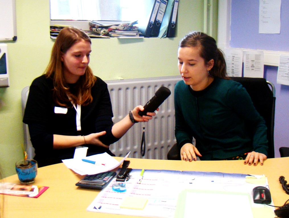 Manch mutiges Teammitglied musste sich dann auch allein hinter das Mikro setzen, während im Nebenraum gelauscht wurde.