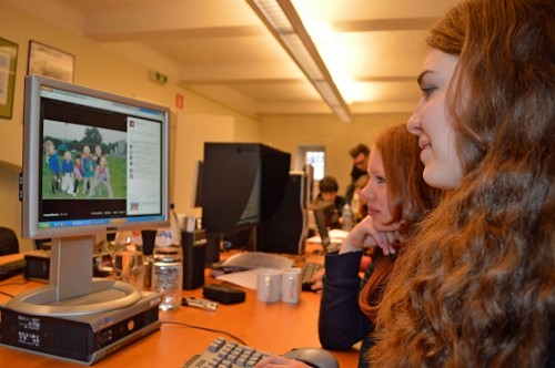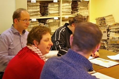 Nora bei der Redaktionskonferenz des GrenzEcho