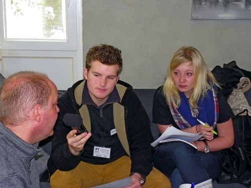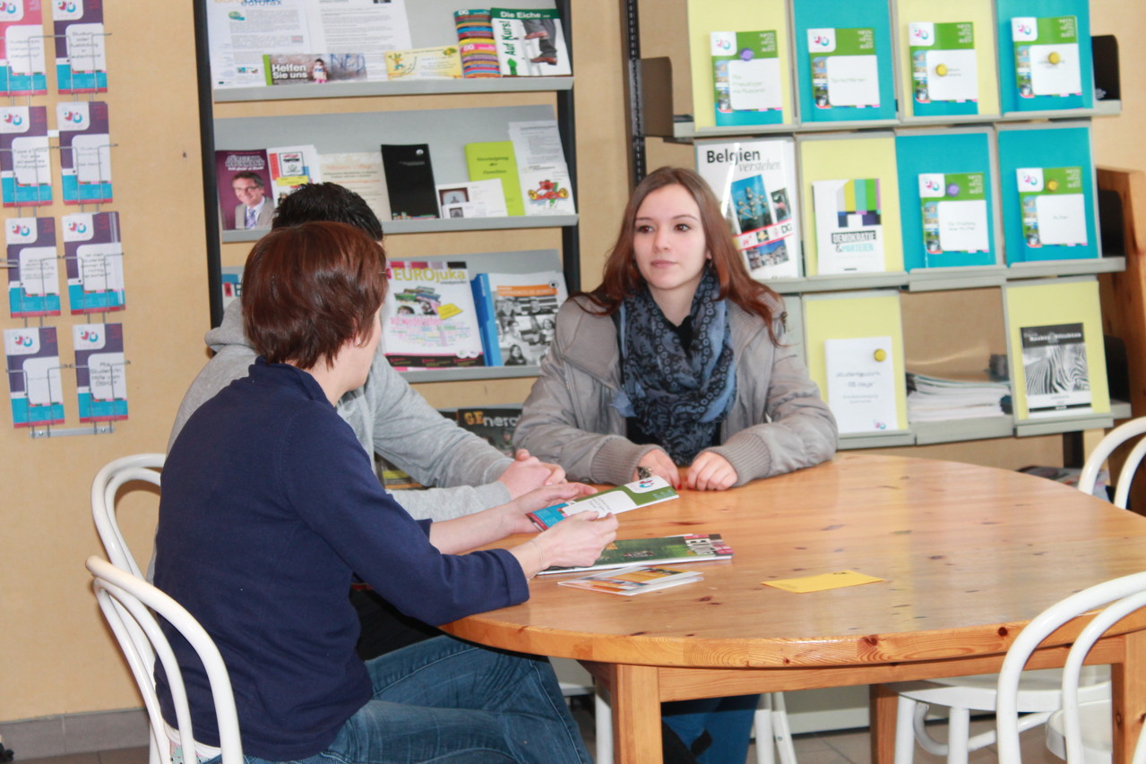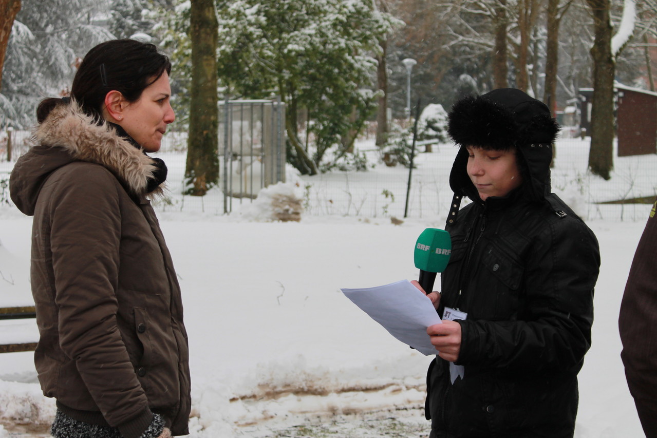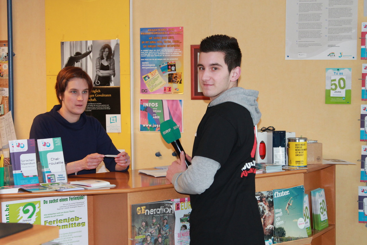 Das Fernsehteam hat das Thema "Entwicklungshilfe" gewählt. Dazu sind wir zuerst zu Sebastian Riermeier nach Raeren gefahren. Riermeier hat einen Film über seine eigene 31-tägige Reise nach Indien gedreht. Anschließend besuchten wir den Infotreff, weil das Fernsehteam erfahren wollte, wie man vorgehen kann, wenn man den Europäischen Freiwilligendienst in Anspruch nehmen möchte. Nathalie Peters erzählte einem RSI-Schüler, wie es ist, wenn man auswandert. Den ganzen Beitrag könnt ihr heute Abend um 18.30 Uhr im BRF-Fernsehen sehen und anschließend auch auf www.j1t.be!