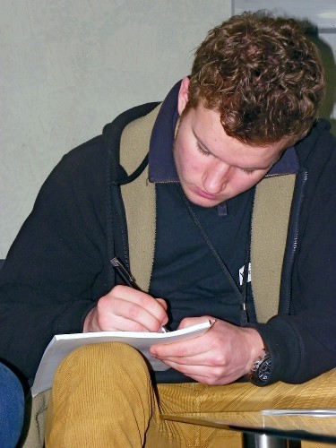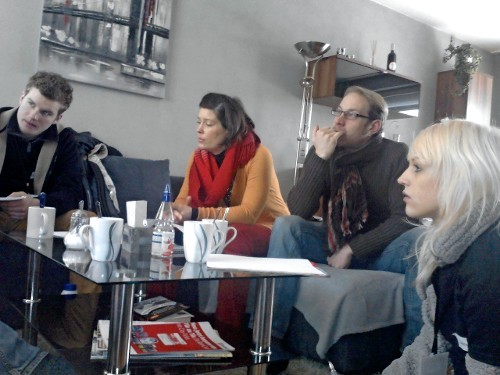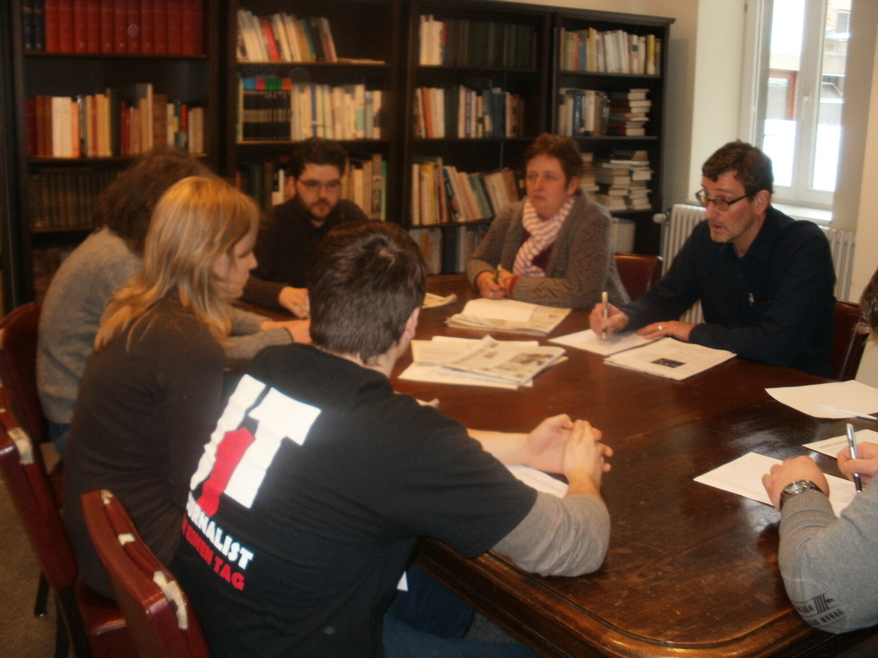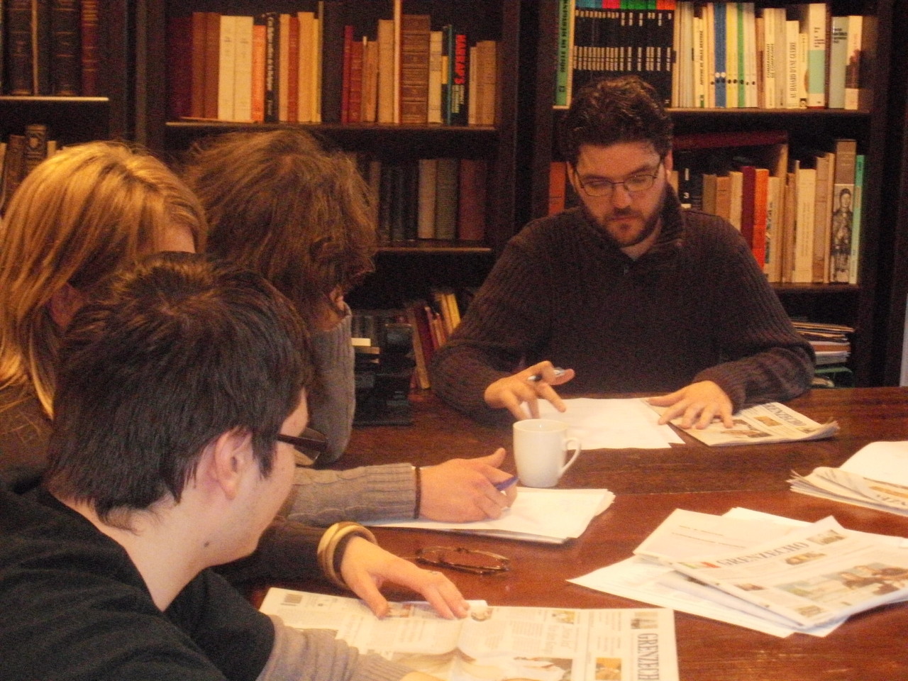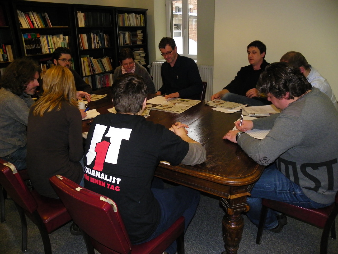 Das Internetteam live bei der Redaktionskonferenz des GenzEchos. Unser Chefredakteur Pascal Kay bei der Präsentation unserer Zeitung, die morgen erscheint.