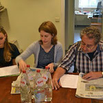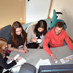 Die größte Gruppe ist die Zeitungsgruppe. Sie besteht aus (v.l.n.r.): Elaine Gietz, Laura Cormann, Jonas Hepp (liegend), Gregory Mentior, Damien Godesar, Maxime Fischer, Julia Fatzaun, Lea Malmendier, Lisa Chavet, Jil Reuter, Berivan Gürbüz (unten links), Laura Bongartz und Astrid Solheid.