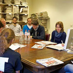 Vorher wurde aber noch die Blattplanung organisiert und die Blattkritik der heutigen Zeitung vollzogen. Nach der Blattkritik berichtete die zuständige Redakteurin über die Hotline, über die die Leser Kritik üben und ihre Meinung sagen können. Danach wurden die Themen der morgigen Ausgabe vorgestellt.